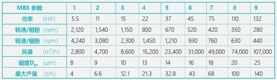 MBS 气流分级机有着特殊的分级轮和导流装置,适用于分级范围在d97 20-200微米之间的中等细度分级。该分级机的特点是:产量高、效率高、能耗低。