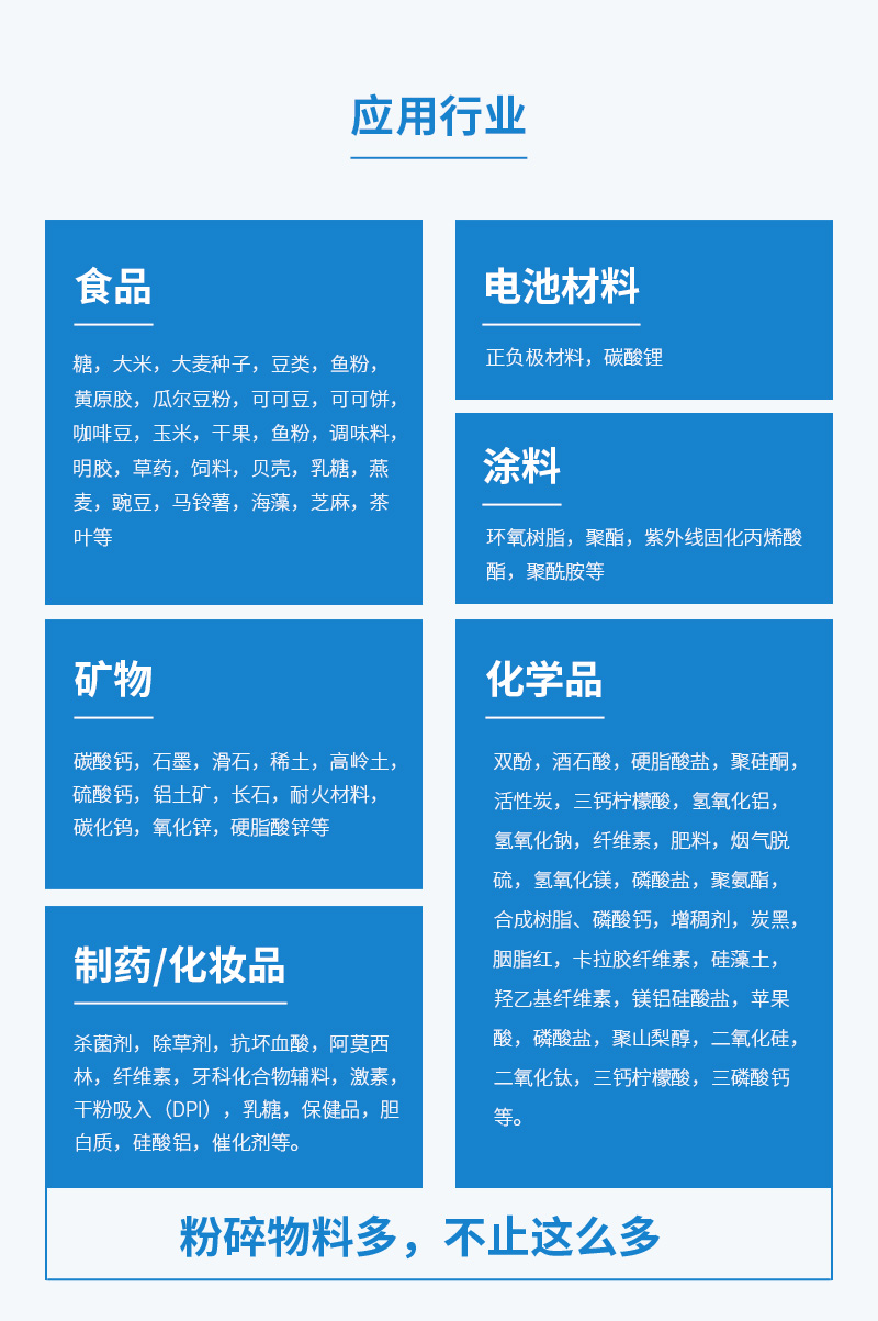 设备优点:粉碎或分级粒度可在D50:1.5-45μm之间任意可调。关键部件可选用全陶瓷结构,零金属污染。粉碎过程可选用惰性气体?;?,安全系数高。